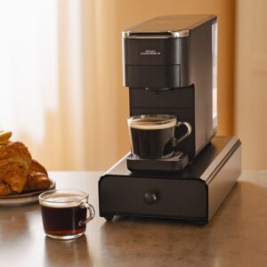 Das ist genau das Problem, das wir mit dem ONYX COOKWARE™ AUFBEWAHRUNGSSCHUBLADE lösen wollen. Es handelt sich um mehr als nur um Stauraum – es ist eine intelligentere Möglichkeit, Ihren Raum zu nutzen. Der Schubladen wurde so konzipiert, dass er perfekt unter oder neben Ihrer Kapsel-Kaffeemaschine oder Ihrem Smart Cooker passt und ungenutzten Raum in saubere, funktionale Aufbewahrung verwandelt. Außen ist er kompakt und unauffällig. Innen bietet er Platz für bis zu 14 Kapseln und enthält drei herausnehmbare Boxen in der Mitte für Tee, Zucker oder andere tägliche Utensilien.