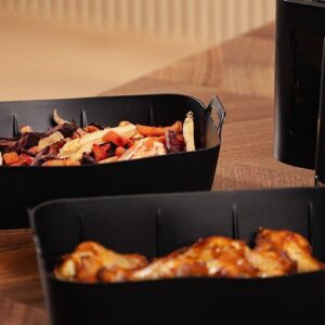 Der ONYX COOKWARE™-HEISSLUFTFRITTEUSE wurde unter Berücksichtigung der Bedürfnisse Ihrer Familie entwickelt. Die Luftfritteuse ist ideal für Familientreffen oder Abendessen. Ihre großzügigen und einfachen Funktionen ermöglichen es Ihnen, große Mengen an Lebensmitteln schnell und effizient zuzubereiten. Stellen Sie sich vor, Sie kommen spät von der Arbeit nach Hause und müssen schnell Abendessen für Ihre Familie kochen – setzen Sie einfach zwei verschiedene Mahlzeiten in jeden Topf, drücken Sie die Synchronisations-Taste und lassen Sie die Luftfritteuse ihre Arbeit machen! Der ONYX COOKWARE™-HEISSLUFTFRITTEUSE ermöglicht es Ihnen, alles zu kochen, was Sie wollen, und das doppelt, was Ihnen Zeit und Mühe spart. Mit seinen doppelten Fritteusentöpfen mit einem Fassungsvermögen von 4+4 Litern können Sie mühelos große Familienessen im Handumdrehen zubereiten!