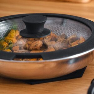 Also, was ist eine Keramikbeschichtung, fragen Sie sich vielleicht? Es handelt sich um eine Beschichtung, die aus natürlichen Materialien – genauer gesagt Ton und Sand – hergestellt wird. Diese Materialien werden durch einen Sol-Gel-Prozess auf das Kochgeschirr aufgetragen und dann gebacken.